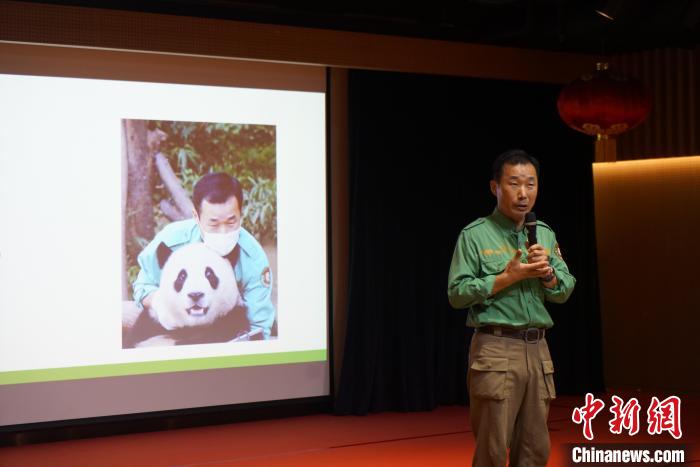 資料圖:姜哲遠在活動上分享自己飼養(yǎng)大熊貓的經(jīng)歷。中新網(wǎng)記者 劉旭 攝