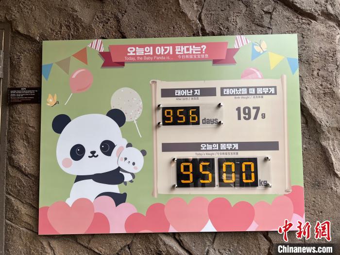 資料圖:愛寶樂園熊貓世界內展示“福寶”當日體重的信息牌。中新網(wǎng)記者 劉旭 攝