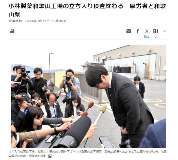 日媒:小林制藥和歌山工廠檢查結(jié)束 制造本部長(zhǎng)鞠躬道歉