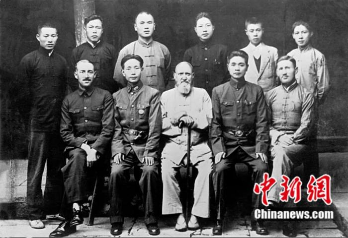 1942年10月中旬,伊文思、法倫斯、詹姆斯頓與中國(guó)軍民在舟山的合影照片。洪曉敏供圖
