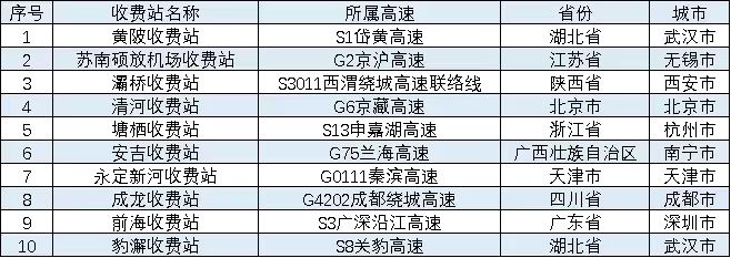 清明節(jié)期間,全國(guó)高速公路預(yù)計(jì)易發(fā)生擁堵緩行的收費(fèi)站,如表2所示。