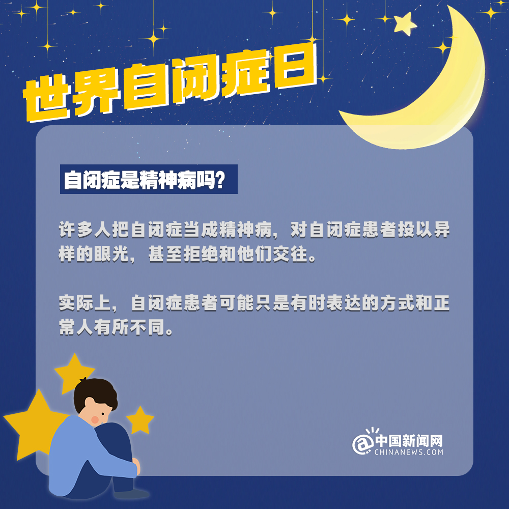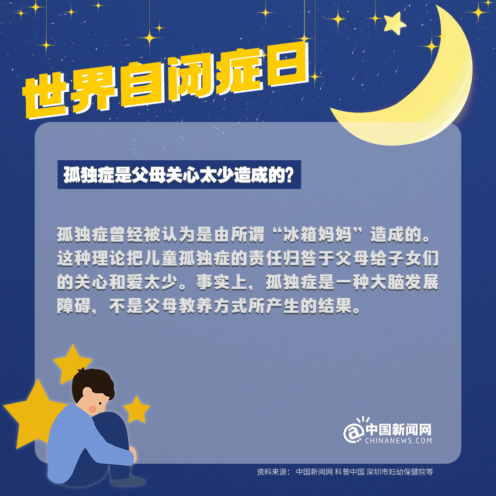 中新網(wǎng)4月2日電 自閉癥兒童,也被稱為“來(lái)自星星的孩子”,他們的情緒難以捉摸,他們的思想難以表達(dá),他們像星星一樣孤獨(dú)地游離在宇宙中……有數(shù)據(jù)顯示:目前中國(guó)自閉癥患者已超1300萬(wàn)人。自閉癥有哪些認(rèn)知誤區(qū)?該如何早期識(shí)別自閉癥?詳情↓關(guān)愛(ài)自閉癥患者,讓星星的孩子有愛(ài)不孤單!