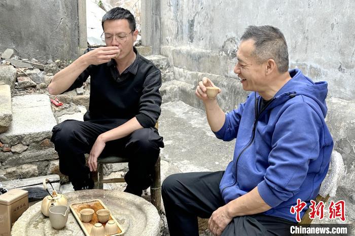 3月22日,葉世芳(右)和鄰里一起喝茶聊天?!≈齑貉?攝