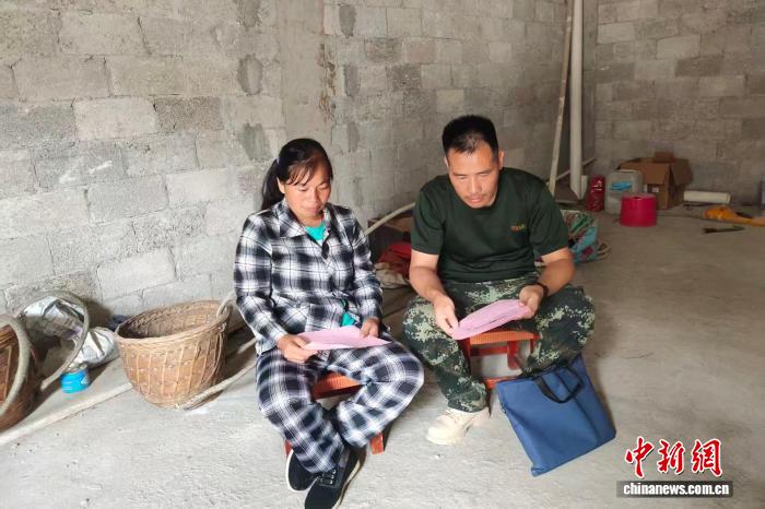 圖為黃樹樂(右一)在入戶進(jìn)行防火宣傳。受訪者供圖