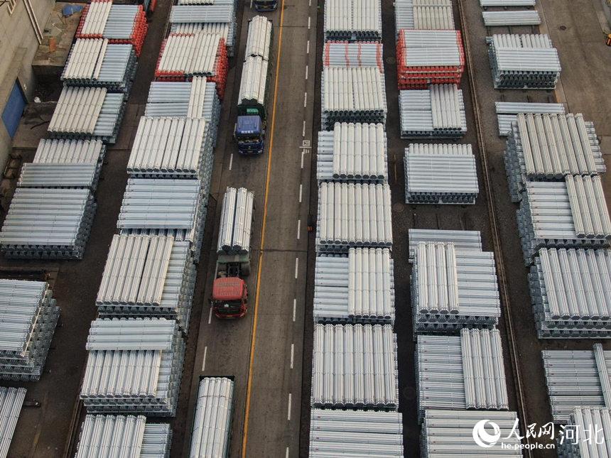 在河北省唐山市豐南區(qū)一家鍍鋅鋼管企業(yè)成品鍍鋅鋼管存放點,貨車滿載管材準(zhǔn)備發(fā)車。崔光攝