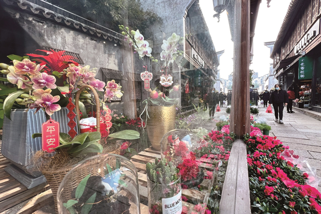 1月18日,在嘉興市區(qū)月河花鳥(niǎo)市場(chǎng),新春花卉五彩繽紛、琳瑯滿(mǎn)目,市民們漫步暖陽(yáng)中,購(gòu)買(mǎi)鮮花裝扮新春。(王振宇、王燁旻)