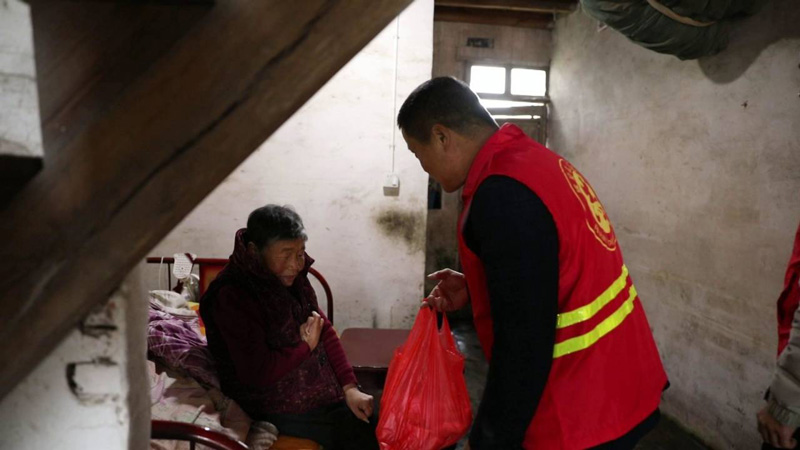 搗年糕的老師傅還特地制作了一批長(zhǎng)條年糕,晾干后裝入袋子,送給村里60歲以上的老人。比起小孩,老人們更注重的是過年搗年糕、吃年糕的傳統(tǒng)習(xí)俗。