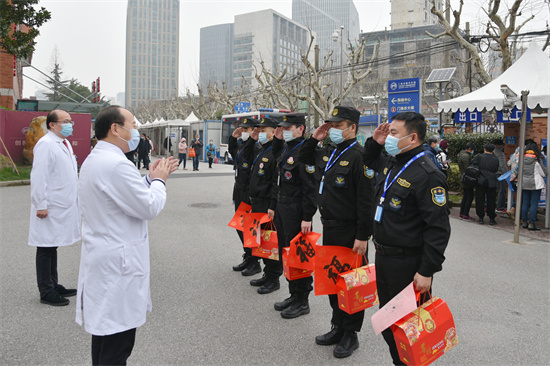 胸科醫(yī)院院領導慰問保安崗一線工作人員(上海胸科醫(yī)院供圖)