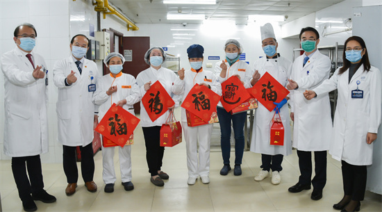 “過年食堂人手少,我國慶回去過了,春節(jié)就不回去了。醫(yī)院在節(jié)前還特意來關心我們,很溫暖!開心的呀!” 朱阿姨在醫(yī)院食堂已經(jīng)工作了15年了,已經(jīng)連著好些年沒回家過春節(jié)了,她把家安在了無錫,像他(她)們這樣一線的外包服務人員還有很多,勤懇工作在普通而平凡的崗位上,為胸科醫(yī)院的發(fā)展貢獻著光和熱。