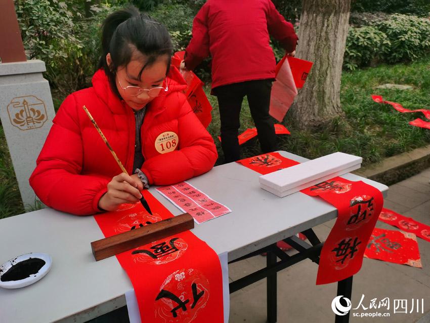 參加寫(xiě)春聯(lián)活動(dòng)的小選手合影。人民網(wǎng) 劉海天攝