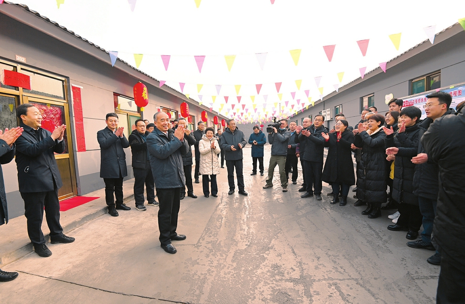 介休市宋古鄉(xiāng)南橋頭村在去年秋汛中農(nóng)房受損嚴(yán)重,林武先后兩次來到這里,指導(dǎo)救災(zāi)和重建工作,看望慰問受災(zāi)群眾。村民們能否把年過好,林武十分惦念。29日一早,他第三次來到該村,實地了解回遷村民溫暖過節(jié)情況。聽說省委書記又來了,村民安海英早早守在村口,拉著林武來到收拾一新的家里。看到安海英家院里高掛大紅燈籠、張貼各式年紅,屋內(nèi)家具齊全、暖意融融。林武高興地說,習(xí)近平總書記來山西考察調(diào)研的第一站,就來到受災(zāi)群眾家中看望慰問??倳浶南蛋傩盏臑槊袂閼?,令我們備受感動、備感鼓舞。共產(chǎn)黨就是給人民辦事的,我們要始終把人民掛在心頭、念在心里,下大氣力解決好群眾的急難愁盼問題,辦好老百姓心頭上的事。廚房里,“八大碗”香味彌漫,剛出鍋的炸油花皮薄酥脆??吹揭患胰苏谧龌x,林武興致勃勃地加入進來。在喜慶祥和的氣氛中,林武給大家拜年,希望鄉(xiāng)親們?nèi)兆酉駸釟怛v騰的花饃一樣蒸蒸日上。