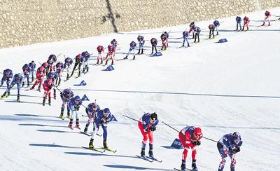 男子越野雙追逐比賽場(chǎng)景。河北日?qǐng)?bào)記者 耿 輝攝