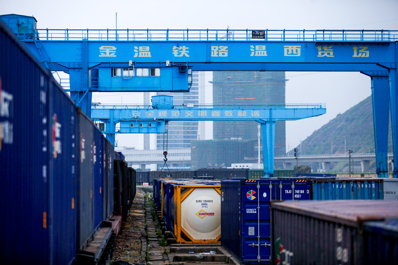 春節(jié)期間,大量貨物從金溫鐵路溫州西站裝車運(yùn)出。戴益澤攝