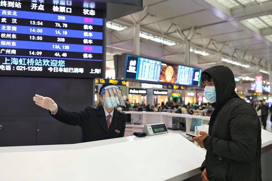 天寒地凍,但虹橋火車(chē)站溫暖如春。