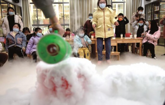 日前,嘉興市秀洲區(qū)高照街道秀清社區(qū)請來科技館老師,將兒童科學(xué)實(shí)驗(yàn)課堂搬到社區(qū),讓孩子們在家門口就能上有趣又好玩的科學(xué)實(shí)驗(yàn)課。(馮玉坤)