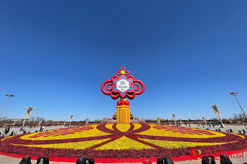 人民網(wǎng)北京3月1日電 (尹星云)日前,天安門廣場“精彩冬奧”主題花壇中國結(jié)南北兩面完成了冬殘奧會會徽更換。據(jù)北京冬奧會城市運(yùn)行及環(huán)境保障組辦公室消息,按照《2022年北京冬殘奧會賽時城市景觀布置工作方案》要求,2月21日至2月28日全市有序開展由冬奧會向冬殘奧會城市景觀布置的轉(zhuǎn)換工作,確保“兩個奧運(yùn) 同樣精彩”。