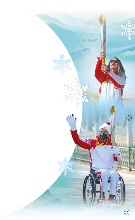 圖①:3月3日,火炬手、國際殘奧委會運(yùn)動員委員會委員瑪?shù)倌取P羅尼傳遞火炬。
