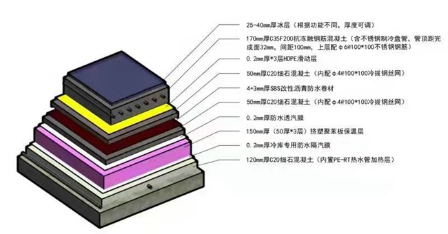 混凝土冰板層這道工序尤為重要,施工也最為艱苦。對李燕敏來說,冰板構(gòu)造施工就如同制作“千層糕”:從下向上鋪設(shè)加熱層、防潮隔汽層、保溫層、隔離層、防水層、混凝土冰板層……55厘米厚的混凝土整整有9層,整個(gè)地面平整度要達(dá)到設(shè)計(jì)要求的精度,每個(gè)環(huán)節(jié)不容有絲毫閃失。