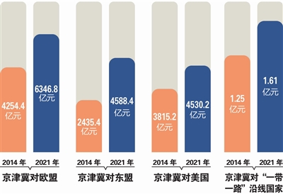 水深則魚悅,城強(qiáng)則賈興。從2014年至今,京津冀地區(qū)進(jìn)出口規(guī)模連創(chuàng)新高,2019年首次超過4萬億元,2021年更是達(dá)到4.44萬億元。在此基礎(chǔ)上,搶抓RCEP帶來的政策紅利,京津冀外貿(mào)出口規(guī)模有望再上新臺階。(記者 張兆瑞)