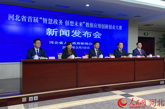 河北省首屆“智慧政務(wù) 創(chuàng)想未來(lái)”數(shù)據(jù)應(yīng)用創(chuàng)新創(chuàng)業(yè)大賽新聞發(fā)布會(huì)現(xiàn)場(chǎng)。 人民網(wǎng) 付兆颯攝