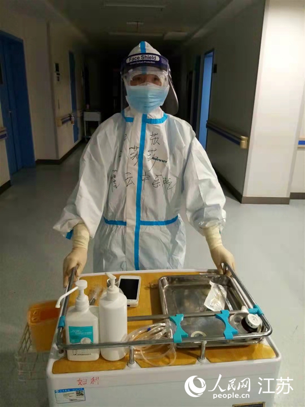 今年3月5日,連云港市突發(fā)新冠肺炎疫情后,被借調(diào)在灌云縣黨史學(xué)習(xí)教育實(shí)踐組的她,在加快臺(tái)賬整理進(jìn)度的同時(shí),時(shí)刻關(guān)注疫情的進(jìn)展情況。她在縣委宣傳部機(jī)關(guān)工作群里不時(shí)以自己的專業(yè)知識(shí)引導(dǎo)大家如何佩戴口罩、“七步洗手法”等防護(hù)方法。隨著疫情防控形勢(shì)的嚴(yán)峻,3月8日,她果斷向部領(lǐng)導(dǎo)、縣突發(fā)新冠肺炎疫情應(yīng)急處置指揮部和“娘家”單位提出了再赴“疫線”的申請(qǐng)。