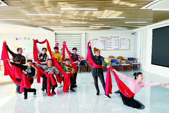 3月10日,金華開發(fā)區(qū)江南街道南苑社區(qū)新時代文明實(shí)踐站一樓大廳,南苑社區(qū)藝術(shù)團(tuán)“幸福里”舞蹈隊(duì)的阿姨正在排練舞蹈。今年初,南苑社區(qū)新時代文明實(shí)踐站重新啟用,老年人可以在這里看書、聽?wèi)颉裎幕钬S富多彩。(時寬兵)