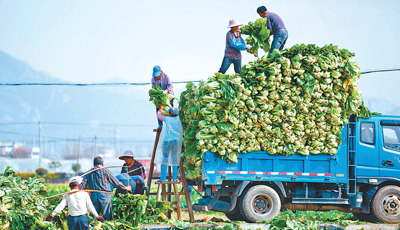 3月16日,浙江省溫嶺市石橋頭鎮(zhèn)沙角村,農(nóng)戶正忙著收割、裝運(yùn)油芥菜。隨著春耕備耕在即,農(nóng)戶及時(shí)搶收早春蔬菜,騰空農(nóng)田種植早稻。