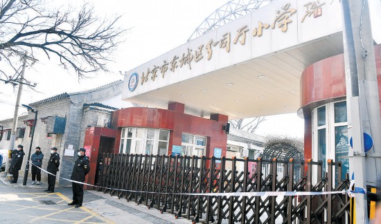 東城區(qū)分司廳小學門口已經(jīng)拉起警戒線,學校暫時停課。本報記者 蔡代征攝