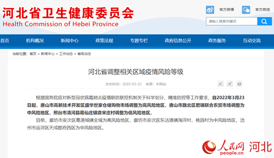 河北省調(diào)整相關(guān)區(qū)域疫情風(fēng)險等級