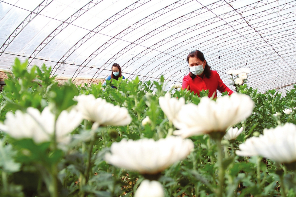3月23日,游客在陽城縣騰佳農(nóng)業(yè)開發(fā)有限公司鮮花種植基地采摘白菊花。近日,該基地60余畝大棚白菊花進入采摘期,吸引眾多游客前來參觀采摘。近年來,陽城縣依托“鮮花經(jīng)濟”,推進農(nóng)業(yè)、林業(yè)與旅游等產(chǎn)業(yè)深度融合發(fā)展,形成以農(nóng)興旅、以旅促農(nóng)的良性發(fā)展模式。(陳來全攝)