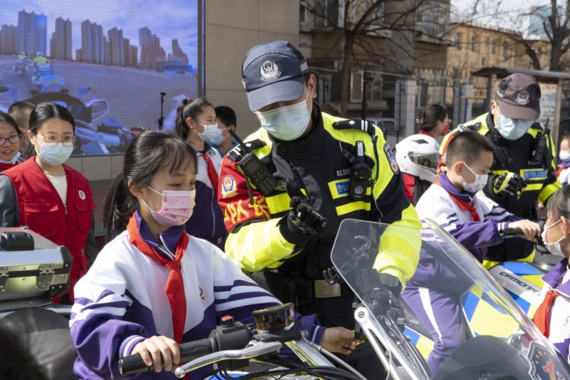 同時,龍城鐵騎隊員向學生詳細地講解了“鐵騎”的構造及各種裝備的功能,并與同學們一起學習交通安全知識,演示交通手勢?,F場,副大隊長趙磊以講故事的形式提醒學生要遵守交通規(guī)則,不要在人行道上追逐打鬧、過馬路要走人行橫道以及正確乘坐車輛等交通安全知識。