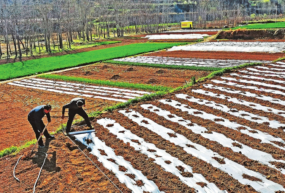 4月2日,垣曲縣南聯(lián)村村民正在田間地膜覆蓋種植早熟糯玉米。該村村民發(fā)揮區(qū)域銷售優(yōu)勢,搶時保墑地膜覆蓋種植白糯、黑糯、香禾糯3個優(yōu)質(zhì)糯玉米品種100畝。這類糯玉米產(chǎn)量高、口感好,4月初播種,6月下旬即可上市,畝收入可達6000多元,比傳統(tǒng)玉米經(jīng)濟效益提高3倍多。(魯國林?jǐn)z)