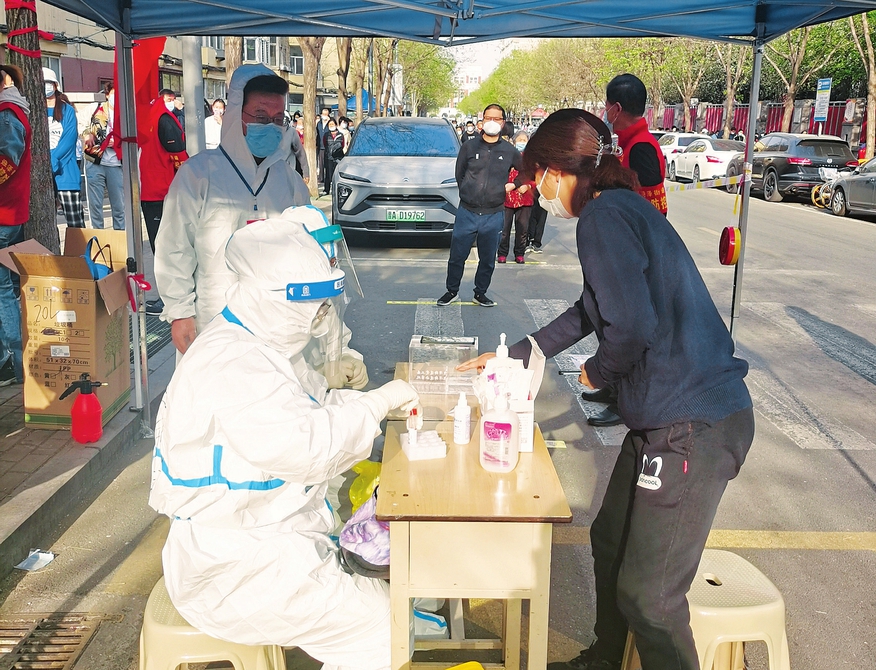 4月11日,省城迎澤區(qū)進(jìn)行居民核酸采樣。青年路小學(xué)教育集團(tuán)首批50名教師志愿者分別到迎澤區(qū)六個(gè)社區(qū)服務(wù)集合地點(diǎn)開(kāi)展核酸檢測(cè)志愿服務(wù)。他們用行動(dòng)詮釋了在非常時(shí)期的使命與擔(dān)當(dāng)。(記者王瑞瑞攝)