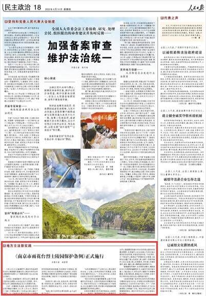 為進(jìn)一步賡續(xù)紅色血脈、宣傳和弘揚雨花臺英烈事跡與精神,2021年12月30日,南京市十六屆人大常委會第三十四次會議審議通過了《條例》?!斑@一《條例》與《南京市紅色文化資源保護(hù)利用條例》有效銜接,形成南京‘點面結(jié)合、相互呼應(yīng)’的紅色文化資源保護(hù)立法體系,為雨花英烈事跡與精神的宣傳和弘揚提供了更加堅強的法治保障?!蹦暇┦腥舜蠓ㄖ莆魅挝瘑T姚正陸說。