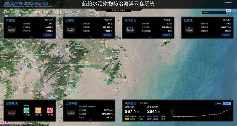 海洋云倉系統(tǒng)是在臺(tái)州中心漁港設(shè)立的船舶污染物集中預(yù)處理中心,可分類回收含油污染物、生活污水、廢鉛酸電池、生活垃圾等海域污染物。海洋云倉系統(tǒng)通過5G網(wǎng)絡(luò)接入云端,將收集的數(shù)據(jù)進(jìn)行實(shí)時(shí)回傳,同時(shí)部署VR相機(jī),利用5G大帶寬特性,監(jiān)控中心可實(shí)時(shí)掌握海洋云倉系統(tǒng)運(yùn)轉(zhuǎn)情況。漁民只要在“浙里辦”手機(jī)端發(fā)起污染物上交申請,系統(tǒng)就會(huì)就近派單,通知專業(yè)船舶上門收集。海洋云倉在收集到一定量級(jí)后,會(huì)通知有專業(yè)資質(zhì)的運(yùn)輸車,把廢油運(yùn)輸?shù)接袑I(yè)處置能力的公司處置或者再生利用,減少后期運(yùn)輸和處置成本。