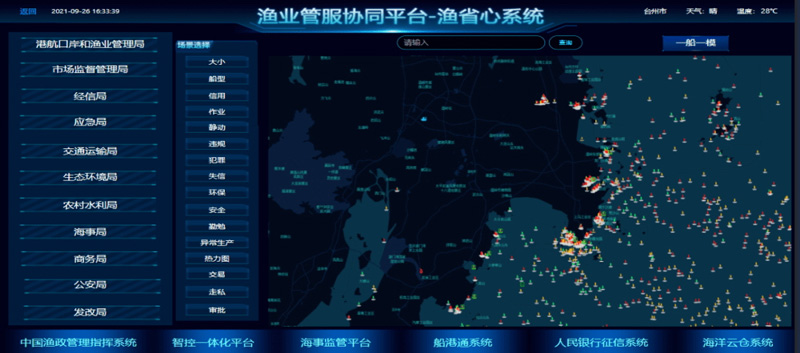 “漁省心”是臺(tái)州市港航口岸和漁業(yè)管理局、臺(tái)州市椒江區(qū)政府聯(lián)合浙江移動(dòng)等共同開發(fā)的數(shù)字化改革項(xiàng)目。通過“一船一碼”的管理方式,“漁省心”可以讓漁船污染物存積、處置情況一目了然。