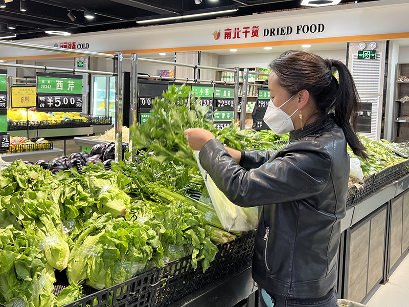 “和以往一樣,品種多、新鮮,想買什么都有?!?月20日,在山西省呂梁市石樓縣新天地超市里,糧油、肉類、蔬菜等各類商品一應(yīng)俱全,家住附近的康阿姨經(jīng)常到這里購物。