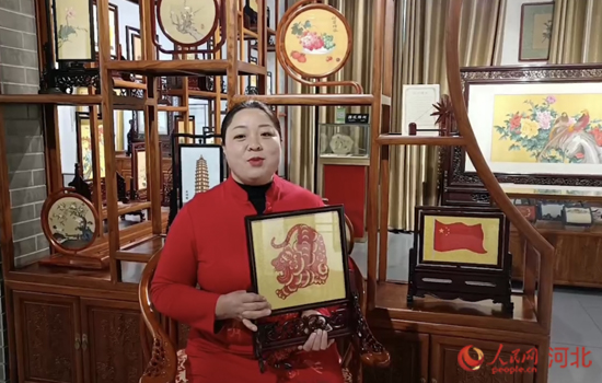 國家級非物質(zhì)文化遺產(chǎn)項(xiàng)目省級傳承人程苗欣制作的虎虎生威緙絲。 人民網(wǎng) 周博攝