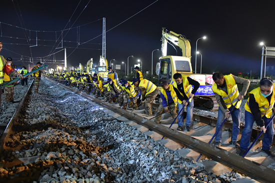 “22日20時40分至23日5時40分、24日22時至25日7時正式進行京唐鐵路與京哈鐵路上下行42號道岔整體橫移插入施工,并取得圓滿成功?!敝袊F路北京局集團有限公司所屬唐山工務段副段長王建介紹說,自3月15日以來,為嚴格落實沿線疫情防控政策,該段組織相關科室、車間20余名干部職工吃住在現(xiàn)場,對兩組道岔預鋪平臺搭設、預鋪組織、線下焊軌、探傷、標志標識油刷、放散、精調等進行全程技術指導,全力確保岔位和平縱斷面上線零誤差。