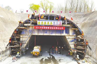 國道G102線市區(qū)段改建工程角山隧道明洞襯砌施工現(xiàn)場,正在緊張施工。 本組照片由河北日報記者孫也達攝