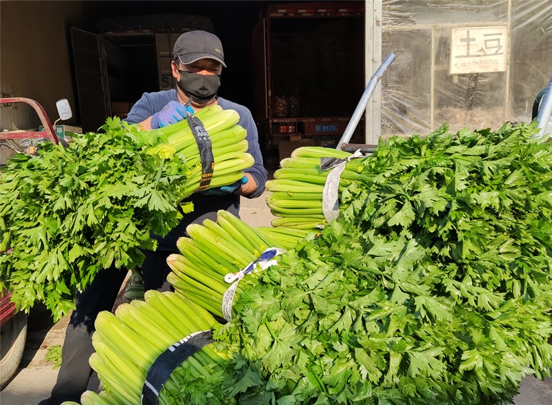 “市場每天大約回貨是40多輛車,蔬菜一百七八十噸,水果一百四五十噸。蘋果、梨、香蕉等常見水果及白菜、西紅柿、黃瓜等日常蔬菜供應(yīng)充足,可以充分滿足市民需求?!笔袌龈苯?jīng)理王健說。