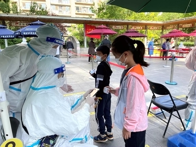 “請您掃碼出示健康寶信息。我來教您如何幫助小朋友代查健康寶狀態(tài)……”5月4日下午2點(diǎn),宋博皓在建國門街道朝陽門南小街16號樓南側(cè)通道的核酸檢測點(diǎn)忙碌著。