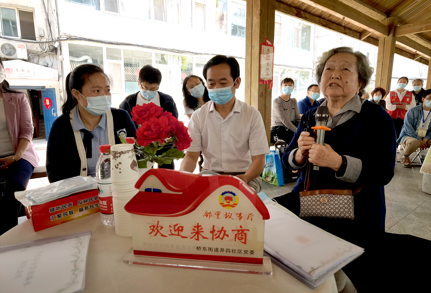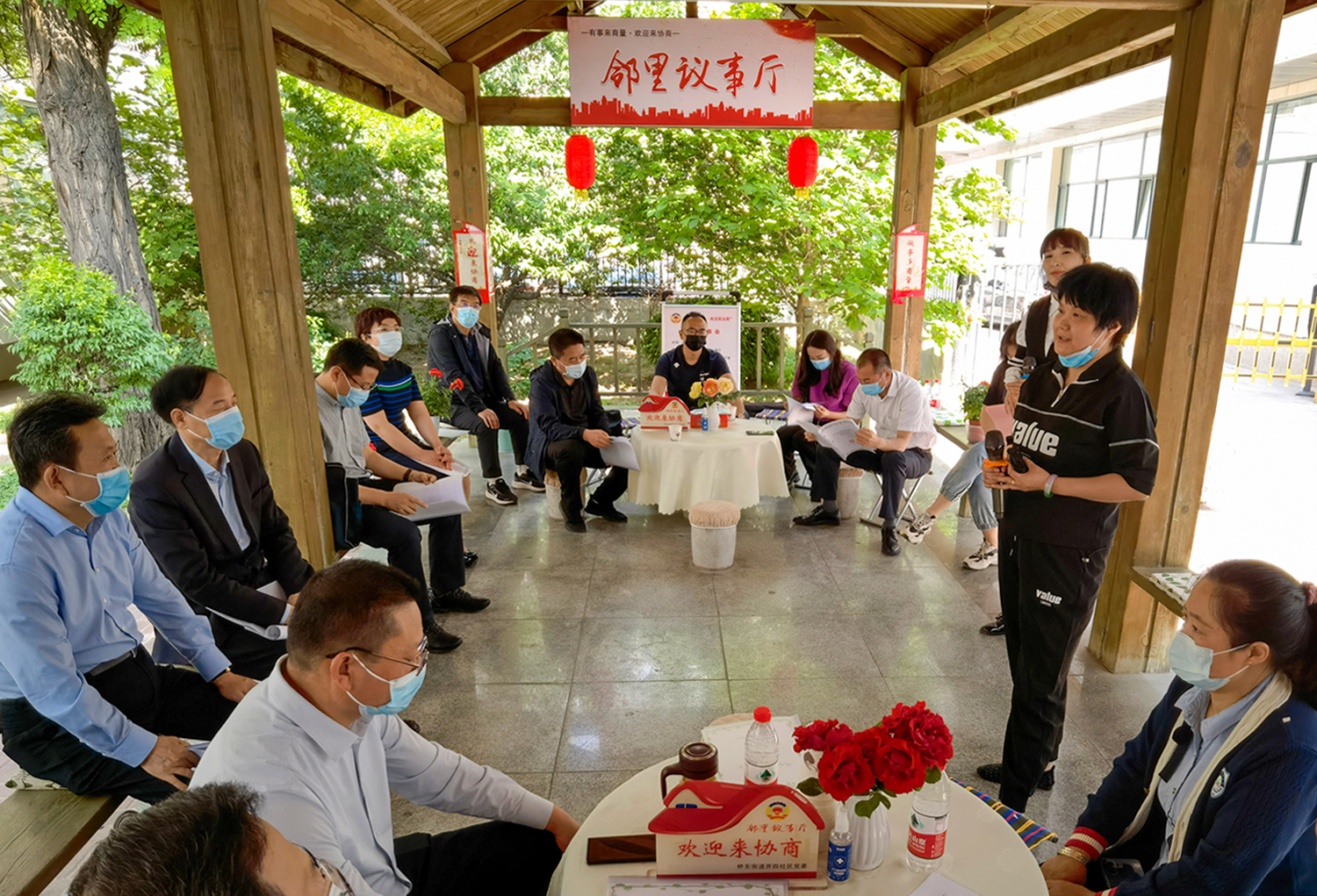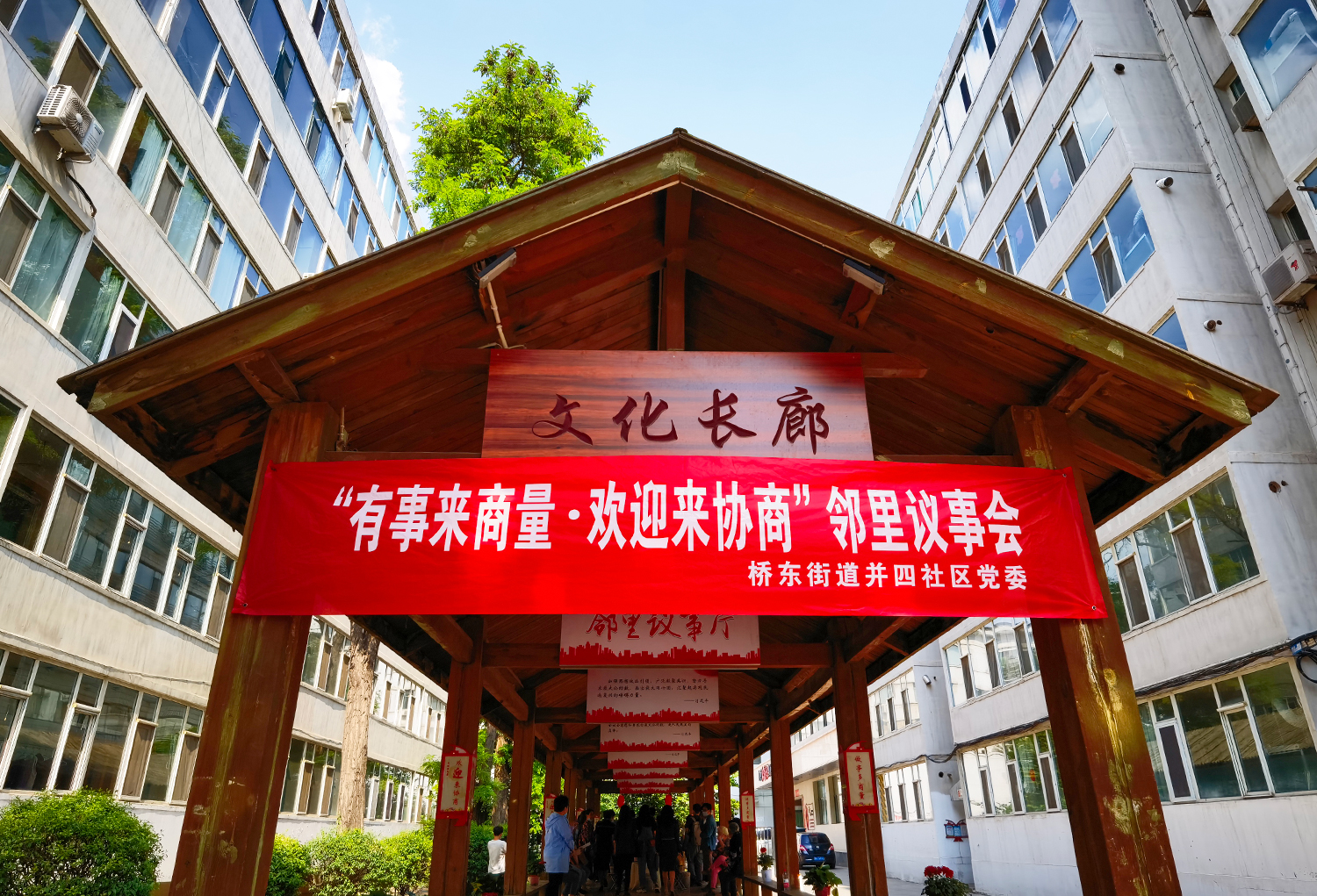 初夏。太原市迎澤區(qū)橋東街道并四社區(qū)新生里89號(hào)院,文化長廊里支起了三張“議事桌”。兩側(cè)長廊不夠坐,前排“見縫插針”擺上了小馬扎,來自街道社區(qū)、物業(yè)、居民和政協(xié)委員等各方面的代表圍坐在一起,“鄰里議事會(huì)”開場了。