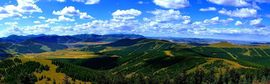 登上塞罕壩機(jī)械林場(chǎng)的月亮山望海樓,舉目眺望,遠(yuǎn)處綠色盡收眼底。