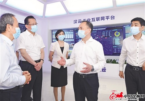 匯報會前,與會人員深入徐州經(jīng)開區(qū)開展了考察調(diào)研。在徐工漢云技術(shù)股份有限公司,宋樂偉詳細(xì)了解關(guān)鍵技術(shù)、產(chǎn)品應(yīng)用、工業(yè)互聯(lián)網(wǎng)平臺打造等情況,鼓勵企業(yè)充分放大工業(yè)互聯(lián)網(wǎng)平臺優(yōu)勢,在推進(jìn)產(chǎn)業(yè)數(shù)字化和數(shù)字產(chǎn)業(yè)化進(jìn)程中發(fā)揮更大作用。“金龍湖綠網(wǎng)”作為污染防控實戰(zhàn)平臺,融合了大數(shù)據(jù)、云計算、物聯(lián)網(wǎng)等先進(jìn)技術(shù),宋樂偉聽取平臺運(yùn)行情況介紹后,要求不斷完善平臺功能,用數(shù)字賦能污染防治。走進(jìn)江蘇天寶汽車電子有限公司生產(chǎn)車間,宋樂偉實地察看企業(yè)“智改數(shù)轉(zhuǎn)”成效,希望企業(yè)持續(xù)加快“智改數(shù)轉(zhuǎn)”步伐,優(yōu)化生產(chǎn)工藝,增強(qiáng)企業(yè)競爭力。