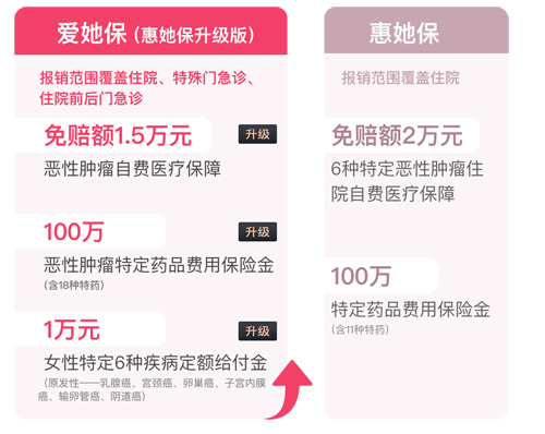 特藥數(shù)量從去年的11種國內(nèi)特藥拓展至今年的18種海內(nèi)外特藥,覆蓋乳腺癌、卵巢癌、輸卵管癌等女性高發(fā)癌癥,0免賠額,報銷比例為90%,最高保額100萬元。