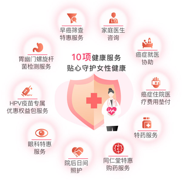此外,“愛她?!边€為參保人提供HPV疫苗預(yù)約服務(wù)、胃幽門螺旋桿菌檢測服務(wù)、早癌篩查特惠服務(wù)、家庭醫(yī)生咨詢、癌癥就醫(yī)協(xié)助、癌癥住院醫(yī)療費用墊付、特藥服務(wù)、同仁堂購藥特惠服務(wù)、院后日間照護等10項健康服務(wù),為女性和家人的健康全面保駕護航。