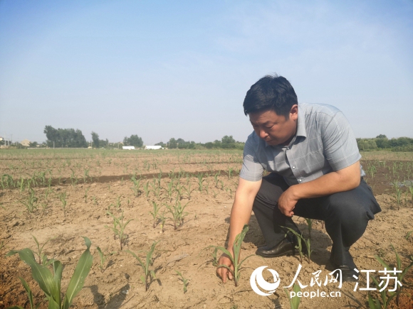 徐建平查看退林還耕后玉米生長情況。人民網 張玉峰攝