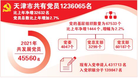 天津:黨員123.6萬名 黨的基層組織6.7萬個(gè)