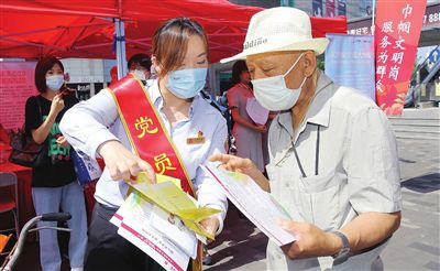 7月13日上午,天津市和平區(qū)濱江道樂賓百貨門前,市第十二次黨代會精神宣講展位彩旗招展,群眾絡(luò)繹不絕。來自衛(wèi)健、科技、政法、交通、公共服務(wù)、社會組織等方面50多個各級各類的為民服務(wù)窗口型“巾幗文明崗”“巾幗建功先進集體”志愿者齊聚,以學(xué)習(xí)宣傳貫徹市第十二次黨代會精神暨“迎盛會、鑄忠誠、強擔(dān)當(dāng)、創(chuàng)業(yè)績”巾幗文明崗為群眾服務(wù)活動為主題,開展多項便民服務(wù)。